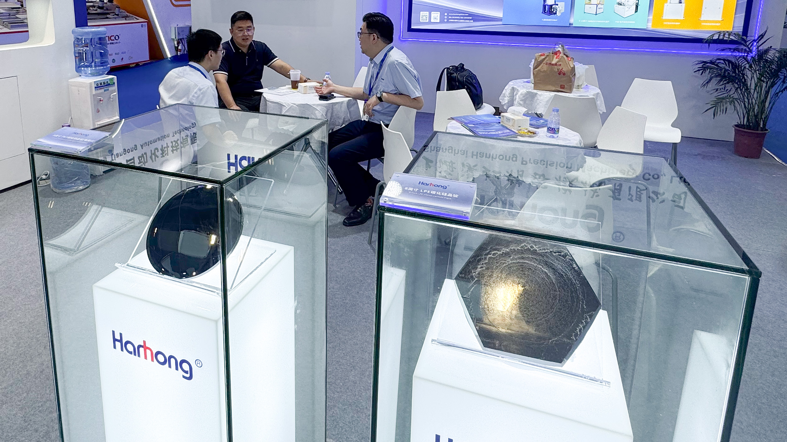 漢虹在展會現場展示了自主研發制備的8英寸碳化硅晶錠(LPE與PVT),以優良的晶體形態、可控的表面微凸度和較低的缺陷密度贏得了專業觀眾的好評。展示了漢虹在碳化硅長晶工藝方面的技術能力。晶錠產品表現出較好的晶體形態和表面質量,體現了公司在材料制備領域的技術積累。