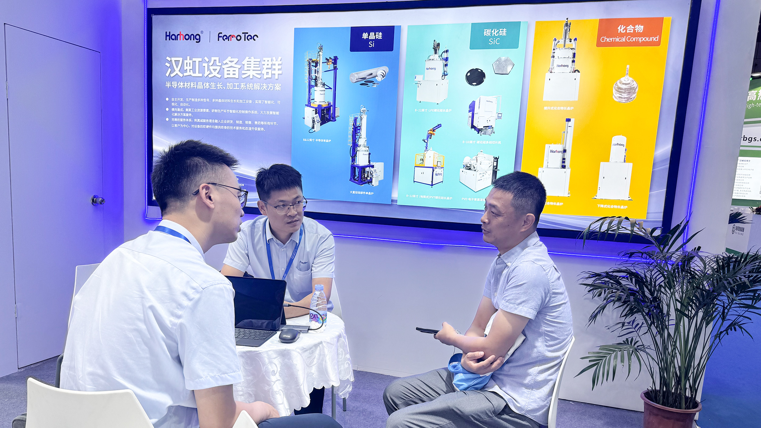 展會期間,漢虹展位吸引了大量專業觀眾駐足交流。漢虹團隊全天候接待了來自半導體產業鏈各環節的企業代表與技術人員,就碳化硅長晶工藝的創新突破與產業化應用進行了深入探討。